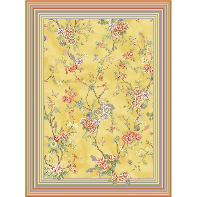 Die aktuelle bassetti Kollektion lässt sich von dem Charme Italiens inspirieren und entführt Sie in die Gegenden rund um den Comer See und dem Lago Maggiore. Neu in der Teppich-Kollektion ist die Serie PALLANZA, die Sie auf Anhieb begeistern wird. Die Elemente dieses so detailreichen PALLANZA-Designs sind inspiriert von der Pracht und der Energie einer üppigen Vegetation, typisch für die botanischen Gärten, die die Villen an den Seen umgeben. Im Mittelteil wird ein elegantes, florales Ranken-Motiv mit Schmetterlingen und kleinen Vögeln dargestellt, dass durch eine Streifenbordüre mit ornamentalen Mikromotiven hervorgehoben wird. Der edle Teppich besteht aus einem feine Materialmix, welcher aus 50% Polyester, 40% Baumwolle und 10% anderen Fasern gefertigt ist. Mit dem exklusiven und pflegeleichtem Teppich PALLANZA von bassetti vereinen sich höchsten Wohnkomfort mit italienischer Dolce Vita. Wir bieten Ihnen diesen geschmackvollen Wohnteppich in verschiedenen Farbvarianten und Größen in unserem AMBIENDO Shop an. Tauchen Sie ein in die farbgewaltige und glanzvolle Welt von bassetti.