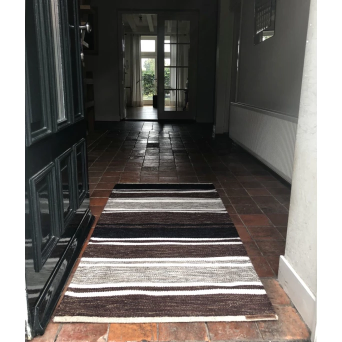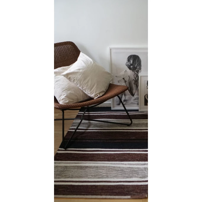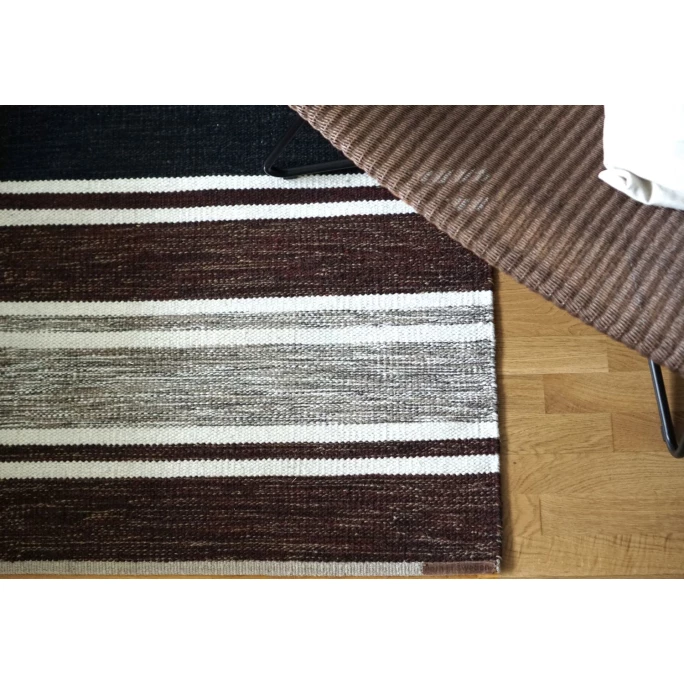 Der extravagante Teppich Tom wurde von der Designerin Veronica Seipel für Born in Sweden entworfen und verleiht Ihrem Zuhause ein stilvolles Ambiente. Er besticht durch seine dekorative Streifenmusterung in harmonisch aufeinander abgestimmten Farben. Der gewebte Vorleger ist aus feinster neuseeländischer Wolle und einer Leinenkette gefertigt, wodurch er eine einzigartige Stabilität bietet und fest sowie sicher auf dem Boden liegt. Durch die langen Fasern der erstklassigen Wollqualität fühlt er sich zudem weich und warm an, sodass man jederzeit auch barfuß darauf laufen kann. Mit dem exklusiven Teppich Tom von Born in Sweden vereinen sich höchster Komfort mit modernem Design. Wir bieten Ihnen das hochwertige Wohnaccessoire in unterschiedlichen Größen und verschiedenen Farbvarianten in unserem AMBIENDO Shop an. Überzeugen Sie sich von der großen Vielfalt!
