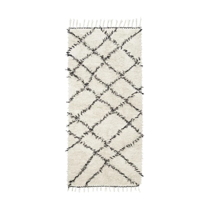 Bringen Sie Eleganz und Stil in Ihr Zuhause mit dem flachen Fransenteppich Riba von House Doctor. Der Wohnteppich Riba beeindruckt nicht nur durch sein schönes, skandinavisches & rustikales Muster, sondern auch durch die langen Fransen oben und unten am Ende des Teppiches. Der Teppich ist rechteckig und lang gezogen, so dass er eher als Teppichläufer eingesetzt wird.