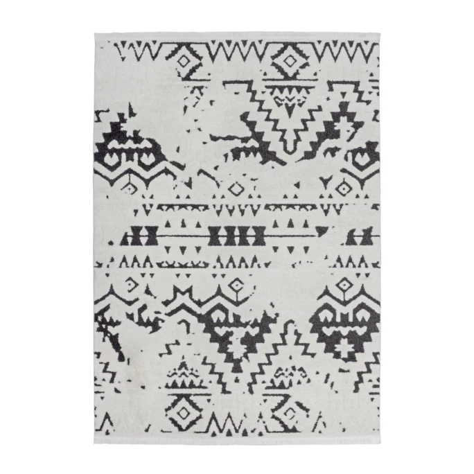 Bringen Sie mit diesem Hochflorteppich Agadir aus dem Hause Kayoom frischen Wind in Ihr Zuhause. Das moderne schwarze Ethno-Muster verziert den hellen Teppich ideal und wird durch die dekorativen und weichen Fransen an den Teppichenden noch unterstrichen. Die schlichten Farben in aufregendem Design werten nicht nur moderne Einrichtungen auf, sondern auch klassische oder rustikale Wohnstile. Statten Sie Ihre Wohnräume mit Ihrem neuen Hochflorteppich aus und schaffen Sie eine gemütliche Atmosphäre, egal ob in Wohnzimmer, Schlafzimmer oder Eingangsbereich. Mit modernen Teppichen von Kayoom holen Sie sich Blickfänge nach Hause. Damit für jede Wohnsituation ein passendes Exemplar dabei ist, ist der Teppich in verschiedenen Größen erhältlich. Der robuste und strapazierfähige Teppich lässt sich durch den Material-Mix aus Polypropylen (70 %) und Polyester (30 %) auch in viel genutzten Wohnbereichen gut auslegen. Bestellen Sie den hochwertigen Teppich Agadir von Kayoom und erfreuen Sie sich an Design und Qualität!