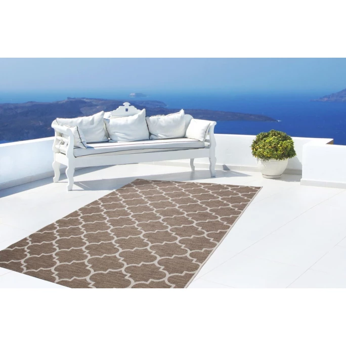 Der Flachflorteppich Indonesia aus dem Hause Kayoom in Flecht-Optik mit trendigem Design setzt als absoluter Trendsetter setzt mediterrane Akzente in jeden Wohnbereich. Das Design unterstreicht jedes moderne Flair. Der natürliche Charakter zeugt von einem ganz eigenen Charme. Die melierten Farben des Flachflorteppichs verschmelzen optisch nahtlos mit seiner Umgebung. Die Naturoptik verleiht neue Kraft. Mit dem speziellen, flach gewebten Flor gestaltet sich dieser Flachflorteppich in Sisal-Optik zu einem alltagstauglichen Allrounder, der den unterschiedlichsten Wohneinrichtungen einen passenden Schliff verleiht und zudem innen und außen ausgelegt werden kann. Hohen Belastungen hält der Indoor-/ Outdoor-Teppich problemlos stand. Die dezent abgestuften Farben passen sich jeder Umgebung an. Der Teppich kann als “Eyecatcher” im Wohnzimmer oder als Vorleger im Flur sowie als Hingucker auf der Terrasse oder dem Balkon eingesetzt werden. Der robuste Flor steht in direktem Verhältnis zu seinem geometrischen Muster und unterstreicht den starken Charakter dieses Flachflorteppichs deutlich. Der Teppich ist ringsum durch eine Kettelung eingefasst, der jegliches Ausfransen verhindert. Feuchtigkeit hat keine Chance. Die Vorteile liegen auf der Hand: Günstig, top-modern, widerstandsfähig und pflegeleicht! Bestellen Sie den hochwertigen Teppich Indonesia von Kayoom und erfreuen Sie sich an Design und Qualität!