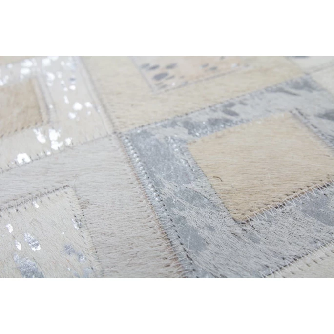 Der wunderschöne Lederteppich Spark aus dem Hause Kayoom mit eingearbeiteten Applikationen aus metallischer Folie rundet jeden edlen Einrichtungsstil gekonnt ab. Der hochwertige Edel-Teppich aus 100% Leder überträgt einen individuellen Touch auf seine Umgebung und erzeugt ein ganz besonderes Flair. Von Hand gefertigt ist jeder einzelne Lederteppich ein Unikat. Die Verwendung von edlen Naturmaterialien und die hochwertige Verarbeitung sorgen für ein dynamisches Aussehen und machen jeden Teppich einzigartig, denn bei Naturprodukten kann es in Form, Farbe und Muster zu Abweichungen von bis zu 30 % kommen. Zudem kann der Besitzer sich an der Nachhaltigkeit dieses Teppichs und an einem natürlichen Wohngefühl erfreuen. Setzen Sie ein Statement mit diesem Lederteppich und machen Sie ihn zum Blickfang in Ihren vier Wänden. Er eignet sich für alle Räumlichkeiten – ob Wohnzimmer, Schlafzimmer, Diele oder Esszimmer. Das moderne Rautenmuster verleiht dem Produkt eine ganz besondere Note und kommt in Kombination mit verschiedenen Möbeln gut zur Geltung. Naturfaser-Teppiche fangen Fusselwolken ein und sind daher besonders gut für Allergiker geeignet, da sie gleich abgesaugt werden können. Der extra bequeme Lederteppich ist ein Alleskönner, der sowohl durch seine Optik als auch durch seine Haptik überzeugt. Das strapazierfähige Material macht die schwere Qualität des Teppichs aus, ist äußerst langlebig und pflegeleicht. Für einen spürbaren Wohlfühl-Effekt sorgt dabei die wärmeisolierende Eigenschaft des Leders. Verleihen Sie Ihren Räumen das gewisse Etwas und schaffen Sie Ihre eigene Relax-Insel in verschiedenen Nuancen. Selbst die kleinste Wohnung lässt sich mit diesem wundervollen Naturteppich persönlich einrichten, denn er ist in verschiedenen Größen erhältlich. Bestellen Sie den hochwertigen Teppich Spark von Kayoom und erfreuen Sie sich an Design und Qualität!