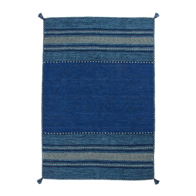 Sie lieben variable Muster in Ihrem Wohnbereich? Dann könnte dieser Wollteppich mit dezenten Akzenten, im dominierenden Mustern der Richtige sein. Durch die hübsche blaue Farbe dieses Teppichs können Sie eine Vielfalt an Effekten erzielen. Seine herrliche Farbvielfalt und das hochwertige Material aus 100% Baumwolle geben diesem flach gewebten Teppich ein individuelles Flair. Mehr noch: Der Kayoom Teppich Alhambra 335 im Ethno-Look ist handgemacht – so erhalten Sie in jedem Fall ein absolutes Unikat! Zeitgenössisch stilvoll mit natürlicher Farbgestaltung setzt dieser Wollteppich reizvolle Akzente in jedem Wohnraum. Rücken Sie die paar Dinge, die Ihnen besonders wichtig sind, in den Vordergrund und machen Sie sie zu einem Blickfang. So schaffen Sie ein modernes Zimmer, das Sie wundervoll durch ein Highlight wie diesen Wollteppich aufwerten können. Der dichte, weiche Flor erwärmt den ganzen Raum – dank der wärmeisolierenden Eigenschaften der Wolle auch bei kalten Fliesen und in kühlen Ecken. Die harmonisch aufeinander abgestimmten Farben bringen das kontraststarke Gesamtbild in harmonischen Einklang. Der traumhafte Wollteppich setzt sich in unterschiedlichsten Räume auf feine Art in Szene und schont empfindliche Fußböden. Naturprodukte können bis zu 30% in Farbe und Form vom Bild abweichen.