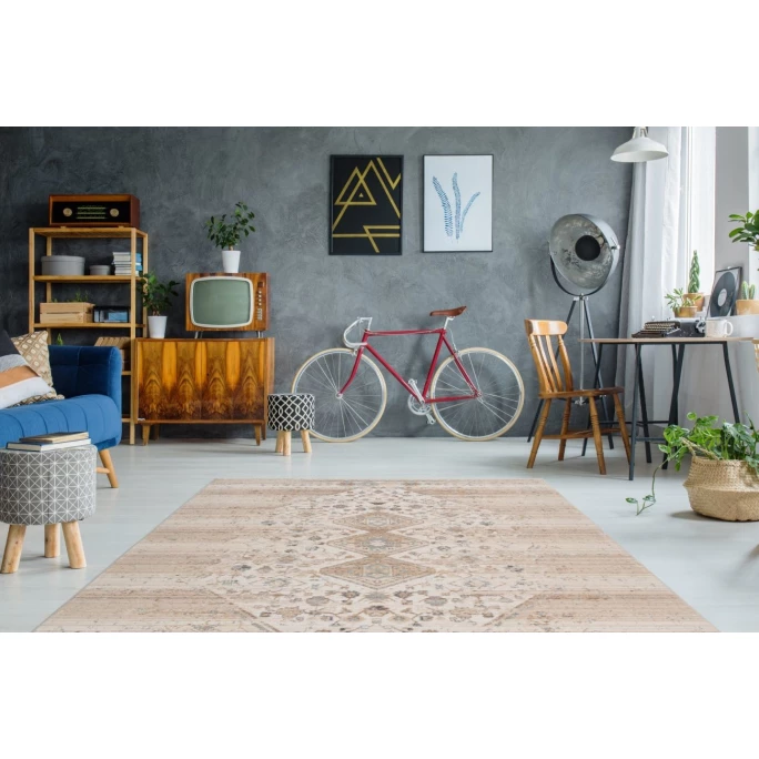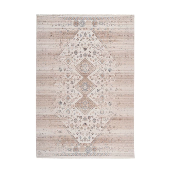 Das stilvolle Design in Vintage-Optik überzeugt mit seinen charakteristischen verwaschenen Elementen und den orientalisch anmutenden Musterungen. Dank des dichten Flors und der weichen Fransen an den Enden des Teppichs, vermittelt das Modell ein gemütliches Ambiente im ganzen Raum und schafft eine absolute Wohlfühlatmosphäre. Verstärken Sie Ihre Vintage-Möbel oder Einrichtung im Retro-Stil mit diesem stilechten Teppich oder integrieren Sie ihn in beliebige andere Wohnstile – der Teppich im Vintage-Stil ist vielseitig einsetzbar. Er ist seitlich gekettelt, was für einen schönen Abschluss des Flors sorgt und gleichzeitig verhindert, dass die Fasern ausfransen. Zudem ergibt sich dadurch ein optisch stimmiges Gesamtbild, das durch die Fransen optimal ergänzt wird. Kreieren Sie sich einen Wohntraum in Ihrem Zuhause mit diesem gemütlichen Teppich. Der Flor ist nicht nur weich, sondern durch die kreuzgewebte Herstellungsart und das Material pflegeleicht. So ist er auch in häufig genutzten Räumen, wie dem Esszimmer oder dem Flur optimal nutzbar. Räume mit Fußbodenheizung sind für dieses Teppichmodell ebenfalls kein Problem. Ein Baumwollrücken verstärkt den Flor des Kayoom Teppich Baroque zusätzlich.