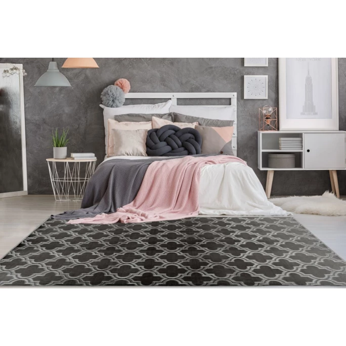 Mit diesem Teppichmodell holen Sie sich ein ganz besonderes Highlight nach Hause. Der einfarbige Kuschelflor ist mit einem Prägedruck versehen, der für eine zweifarbige Wirkung sorgt und gleichzeitig einen 3D-Effekt mit sich bringt. Durch die niedrigeren geprägten Fasern entstehen Höhen und Tiefen in der Oberfläche, die dem Kayoom Teppich Monroe seine besondere Optik verleihen. Rundherum ist der Teppich gekettelt, was ein Ausfransen verhindert und gleichzeitig das Gesamtbild abrundet. Das stilvolle Design passt in nahezu jeden Einrichtungsstil und sorgt in den Wohnräumen für eine angenehme Wohlfühlatmosphäre. In der Haptik fühlt sich der Flor an wie echtes Kaninchenfell und ist somit besonders weich und komfortabel. Durch den Baumwollrücken mit Anti-Rutsch-Noppen wird unerwünschtes Verrutschen des Teppichs verhindert. So kann er optimal als Vorleger vor dem Bett im Schlafzimmer genutzt werden, um direkt beim Aufstehen das angenehme Gefühl unter den Füßen spüren zu können. Aber auch für gemütliche Stunden vor dem Kamin ist dieser Teppich optimal geeignet. Kombinieren Sie den Teppich mit passenden Heimtextilien und schaffen Sie mit stimmiger Beleuchtung eine kuschelige und gemütliche Atmosphäre in Ihrem Zuhause.