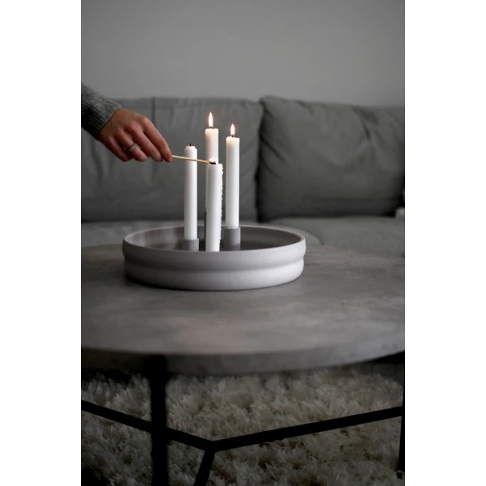 Elegant, zeitlos und vielseitig einsetzbar! Aus matter, unbehandelter Keramik handgefertigt, punktet der unifarbene BOLMEN Kerzenhalter von Storefactory durch ein tolles und praktisches Design. Ein runder Teller mit erhöhtem Rand, auf dem vier Stabkerzen Platz finden – einfach perfekt! Egal ob im Alltag, auf der festlich dekorierten Tafel oder als moderner Adventskranz: BOLMEN passt einfach immer, lässt sich durch den schlichten Look hervorragend kombinieren und bietet Ihnen die Möglichkeit ganz individuelle Dekoration zu kreieren. Da jeder BOLMEN Kerzenhalter von Hand gefertigt wird, kann es zu kleinen Punkten oder Vertiefungen in der Keramik kommen. Dies ist jedoch kein Manko, sondern macht jeden Storefactory Kerzenteller zu einem echten Unikat. Zur Reinigung des Kerzenhalters können Sie einen handelsüblichen “Schmutzradierer” verwenden. Dieser hinterlässt keine Rückstände und reinigt die unbehandelte Oberfläche besonders schonend. Lassen Sie sich von dem stilvollen Design begeistern und bringen mit dem BOLMEN Kerzenhalter von Storefactory skandinavisches Flair in Ihr Zuhause!