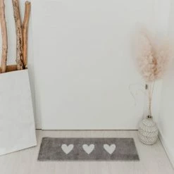Großhandel ???? Eulenschnitt Weiße Herzen Fußmatte Indoor & Outdoor – Ca. 25x75x1,5 Cm – Grau ????